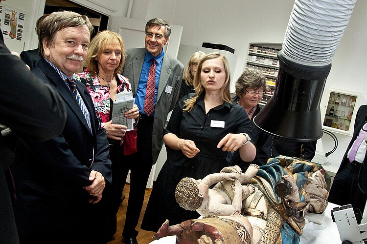 Andrang in der Restaurierungswerkstatt: Die Parlamentarier zeigten sich beeindruckt von den vielfältigen Arbeiten vor Ort.