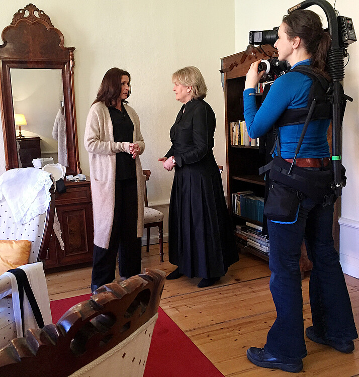 „Die Dreharbeiten machen Spaß und der Austausch mit dem Filmteam ist eine interessante Erfahrung“, sagt Dr. Kristin Püttmann, Äbtissin im Kloster Medingen. Das Kloster nahe Bad Bevensen gehört zu den sechs Lüneburger Klöstern, die sich seit dem Mittelalter bis heute erhalten haben. Das Besondere ist die Gestalt seines frühklassizistischen Hauptgebäudes, das nach einem Brand der alten Klosteranlage ab 1782 in moderner Form errichtet wurde. Es ist das einzige Ensemble dieser Art in Norddeutschland.
