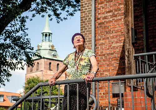 Ein Motiv aus der Ausstellung: Roswitha, 70 Jahre alt, lebt in einer Unterkunft der HERBERGEplus nahe der Lüneburger Altstadt. Foto: Mathias Mensch