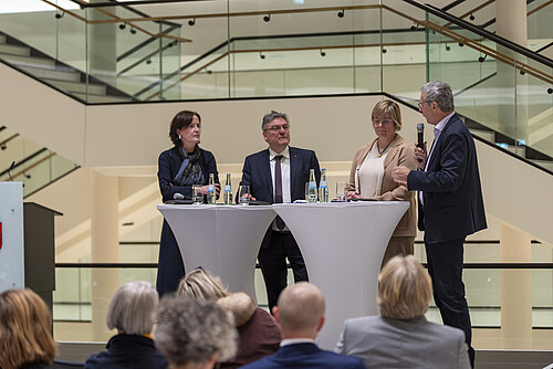 Gemeinsam auf dem Podium: Dr. Christina Krafczyk (v. l.) diskutierte mit Prof. Joachim Schachtner, Dr. Thela Wernstedt und Robert Marlow. Foto: Carina Wehrstedt, NLD